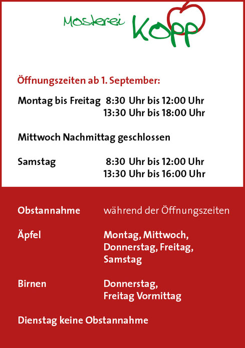 Öffnungszeiten Herbstbetrieb- ab 1. September 2025
